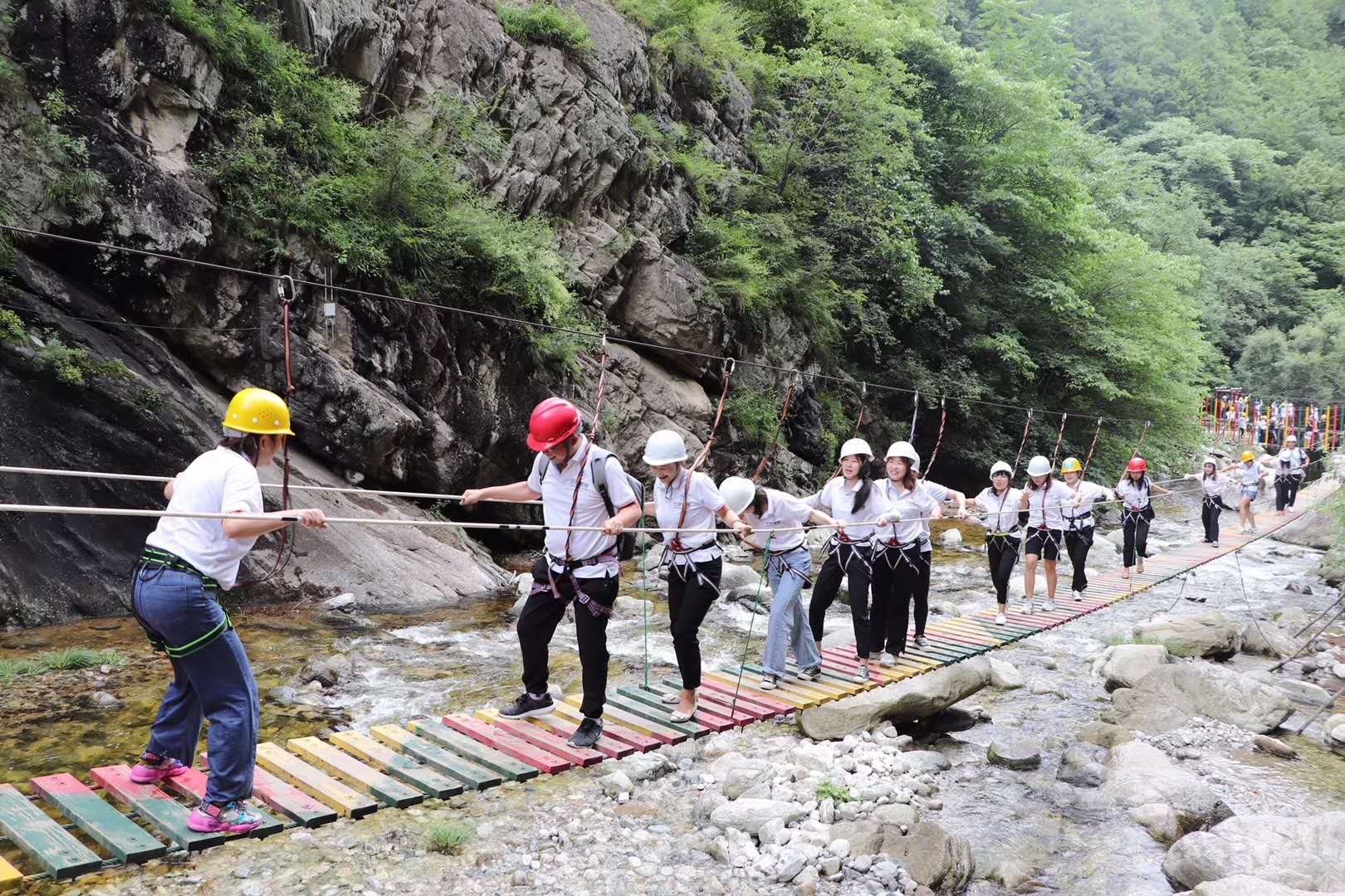 微風不燥,陽光正好,工作不止眼前的KPI,還有終南山寨的巨石林立,草木蔥蔥,小溪流水,山花爛漫……為了豐富員工的文化生活,增強團隊的凝聚力,營造積極向上、團結互助的氣氛,7月18日,安康德隆公司在柞水終南山寨組織了以“激情七月 快樂團建”為主題的一場戶外團建拓展活動。本次活動由德隆網絡、德隆財稅、德隆人才三大事業(yè)部30余人參加。早上7點整,全體員工在專業(yè)導游帶領下、懷揣著雀躍的心情,一路穿山越嶺,向終點出發(fā)~
