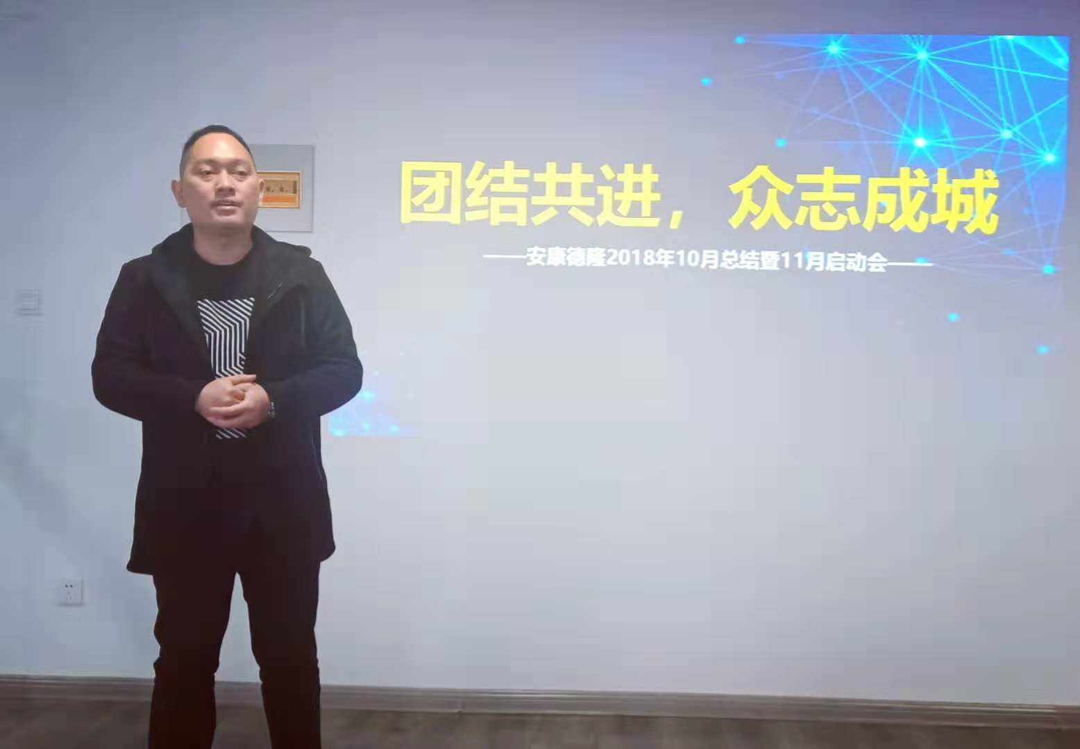 11月迎來了德隆六周年慶典,同時公司正式簽約58同鎮(zhèn)安康總代理,劉副總分別從公司11月份銷售目標(biāo)、增員、獎勵激勵政策等方面做了計(jì)劃指示,要求銷售部銷售責(zé)任人均簽訂團(tuán)隊(duì)軍令狀和PK戰(zhàn)書,會議上劉副總分別從市場宣傳及抓能力提升方面提出幾大方向。