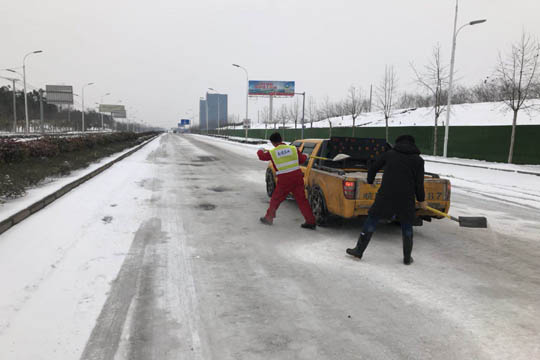 本次鏟冰除雪我公司平均每天投入除雪人員60人次、除雪鏟車6臺次、積雪轉(zhuǎn)運車5臺次、皮卡車14輛次,共撒鋪融雪劑(工業(yè)鹽)32.5噸、此次鏟冰除雪,公司共計投入資金約26萬元。