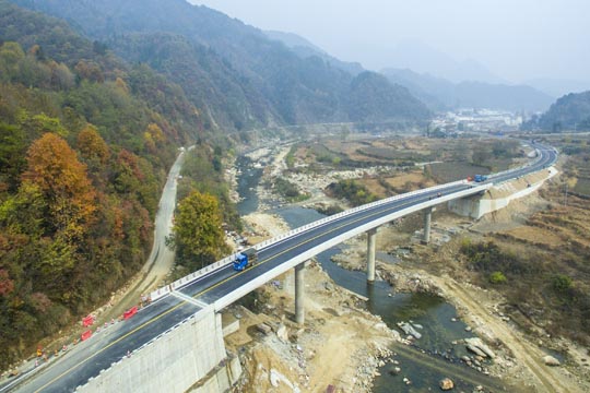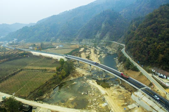 本項(xiàng)工程位于金寨縣燕天路上,是連接天堂寨風(fēng)景區(qū)重要旅游道路。去年“6.30”特大暴雨造成漁潭村境內(nèi)山體滑坡、道路塌方、交通中斷。災(zāi)情發(fā)生后,各級(jí)政府及交通主管部門十分重視,立即組織搶修,特別是負(fù)責(zé)該路管養(yǎng)的六安市公路管理局在保障通行的前提下,以最快速度組織專家評(píng)審、論證、設(shè)計(jì)、招標(biāo)、實(shí)施。該項(xiàng)工程全長1356米,包括2座大橋、1座中橋,中標(biāo)施工企業(yè)六安市交通公路實(shí)業(yè)有限公司精心組織、全力投入、克服重重困難,經(jīng)過242天的艱苦奮戰(zhàn)終于如期、保質(zhì)、安全完成施工任務(wù)。