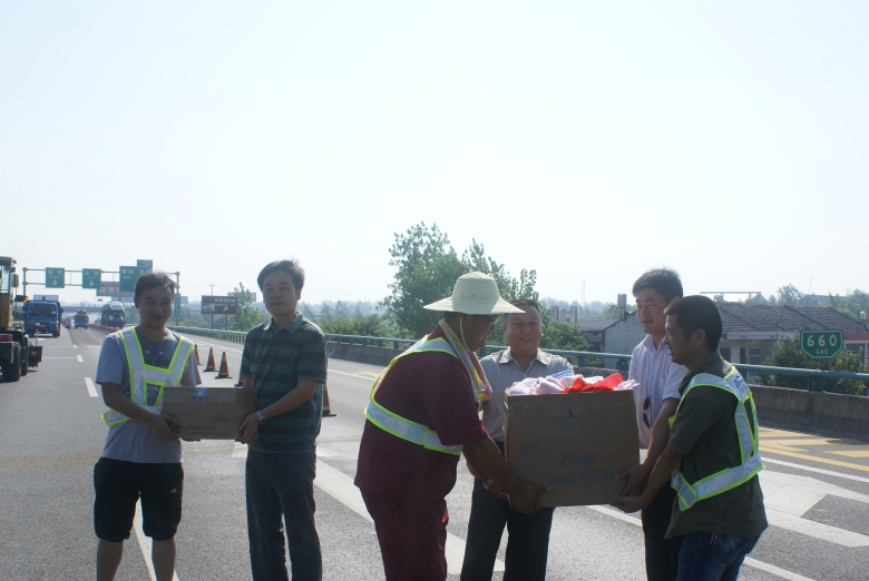 連日來,氣溫節(jié)節(jié)攀升,酷暑考驗著堅守在合六葉高速公路養(yǎng)護工程施工一線的職工。8月8日上午,公司領(lǐng)導及工會一行帶著毛巾、花露水、洗發(fā)液、香皂,急救藥箱及防暑降溫物品來到高速公路施工現(xiàn)場,親切慰問在烈日下仍辛勤地工作在工程施工最前線的一線職工。總經(jīng)理萬世林詢問了他們在高溫天氣下的工作、生活情況,叮囑職工在當前持續(xù)高溫的不利條件下,安全做好工作的同時,注意休息,勞逸結(jié)合,合理調(diào)整工作作息時間,采取有效的防暑措施,安全順利地度過高溫季節(jié),保質(zhì)保量的完成施工任務。