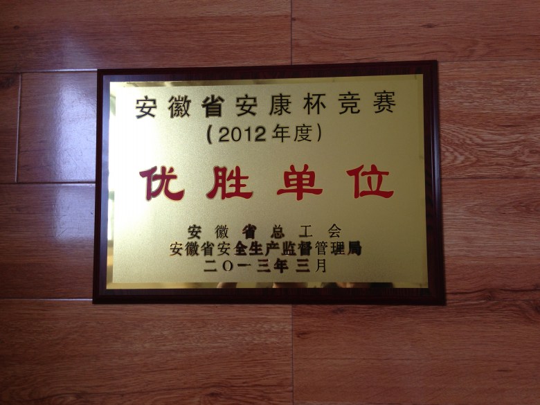 近日,實業(yè)公司榮獲由安徽省總工會、安徽省安全生產(chǎn)監(jiān)督管理局頒發(fā)的安徽省2012年安康杯競賽“優(yōu)勝單位”稱號。